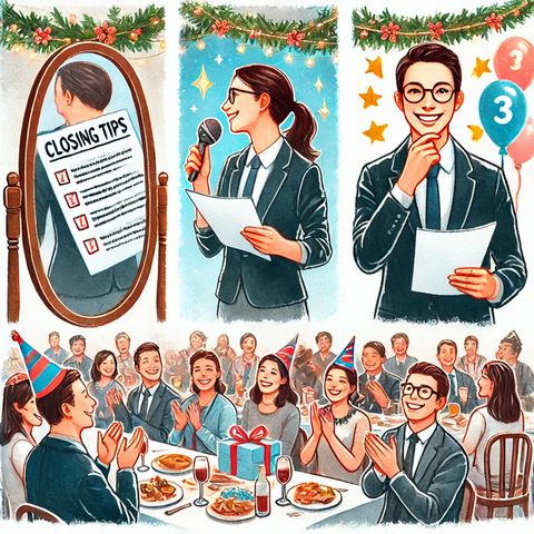 これらの準備と流れを意識することで、どのような立場でも忘年会の締め挨拶を成功させることができます。しっかりと計画を立てて臨むことで、自信を持ってスピーチができるようになります。