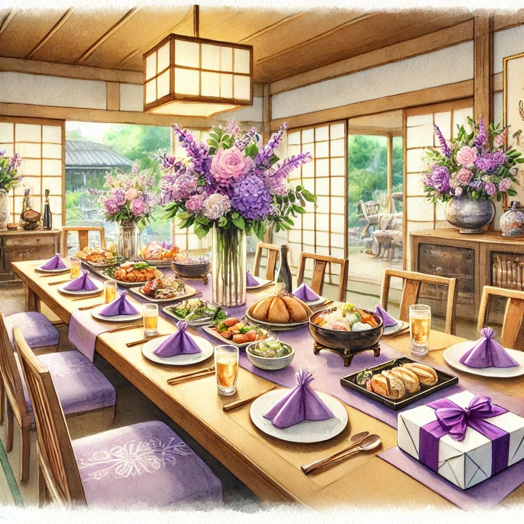 家族や友人と楽しむ古希のお祝いには、親しい人たちとの温かな時間を共有できるアイデアが喜ばれます。まず、落ち着いた雰囲気で過ごせるレストランや料亭での食事会は、会話を楽しみながら美味しい料理を堪能できる定番の方法です。特に、古希を祝う紫色を取り入れた装飾やテーブルセッティングを加えると、記念の場が一層華やかになります。日本料理や和食のコースは長寿を祝う席にふさわしく、和やかなひとときを演出します。