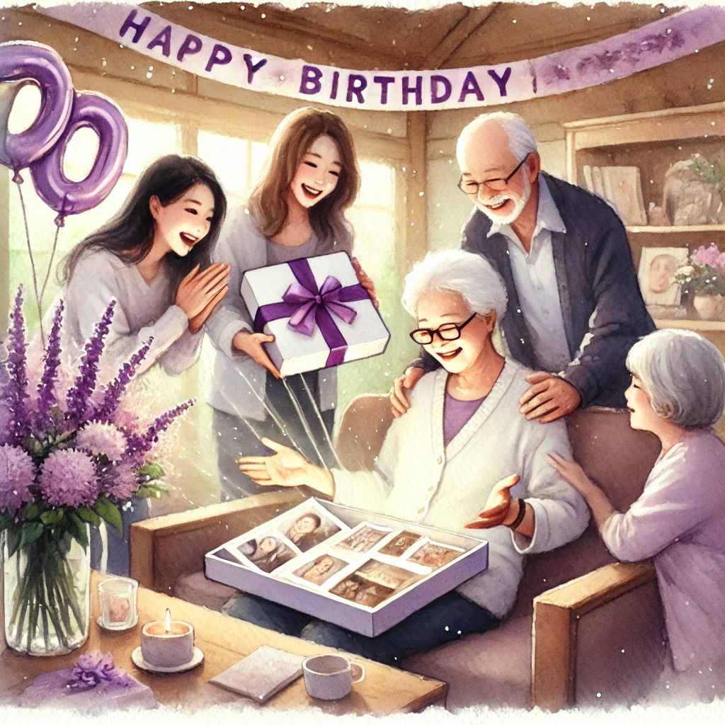古希のお祝いにサプライズを加えることで、さらに感動を与える特別な時間を演出できます。まず、家族や友人からのメッセージを集めて、動画やフォトブックにまとめた「メモリアルムービー」は、思い出を共有する感動的な演出として非常に人気があります。幼少期から現在までの写真やエピソードを盛り込み、背景には好きな音楽を流すことで、懐かしさと感動を呼び起こすことができるでしょう。
